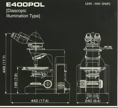 A CFI60-Based Polarizing Microscope that is Compact and Easy to Use A CFI60-Based Polarizing Microscope that is Compact and Easy to Use Employing Nikon's exclusive CFI60 infinity optical system, the E400POL boasts high N.A.'s and long working distances. In addition to its superior basic performance, this polarizing microscope has a compact size with ergonomically placed controls for hours of strain-free operation. The E400POL features a 6-volt, 30-watt quartz halogen illuminator for economical and trouble-free illumination. The Eclipse E400POL is ideal for routine observations and inspections. |