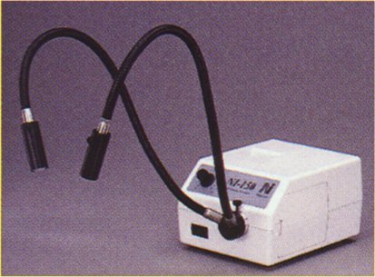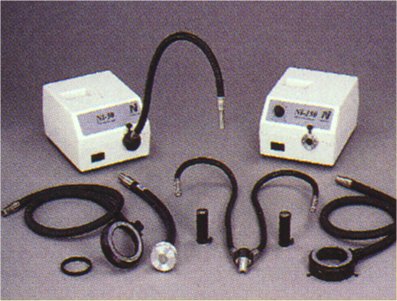 | Sophisticated yet affordable, the NI-30 offers the value-conscious buyer many of the features found in the NI-150. The rugged, convection-cooled enclosure eliminates all noise and vibration for those users with tight workspaces and/or critical applications. The NI-30 is a 30 watt quartz halogen unit that comes standard with a single fiber optic gooseneck light pipe and delivers 10,000 foot candles of intense, cold illumination. Dual gooseneck light pipes and ringlights are also available. Incorporating the NI-150's most popular features, the NI-30 is a well-designed economical illuminator. |