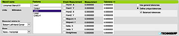 - Detailed information is stored for each key feature to be measured. The user selects only those measurements that are critical, establishes tolerance for subsequent parts.